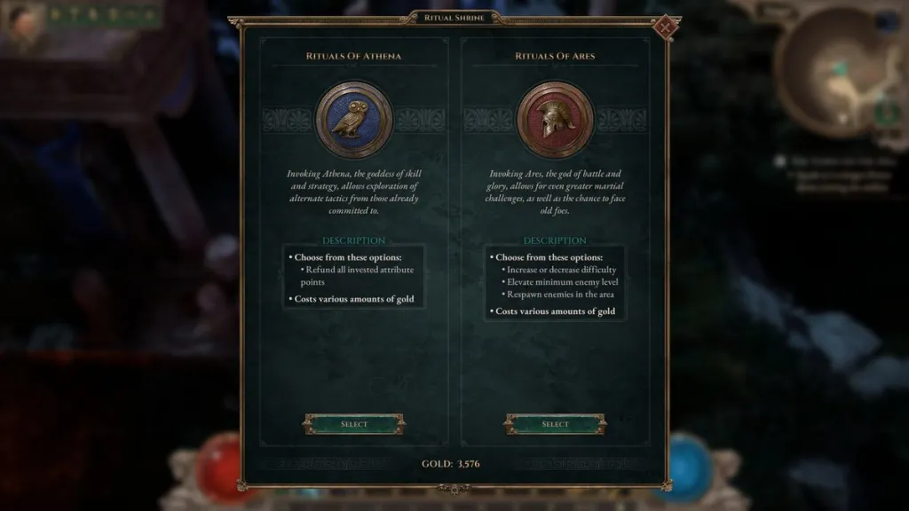 The Ritual Shrine will show you two different rituals: Rituals of Athena and Rituals of Ares and both have different use cases.