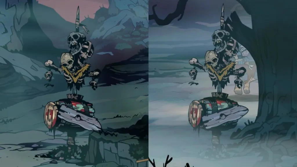 In order to reach the heart of the Misty Grove, you will need to follow the right path. Hit the signpost with the skulls twice every time it shows up. You may use your regular light attack for this. Once done, the arrow will move towards the right path. After three signposts, you will reach the heart of the Misty Glove.