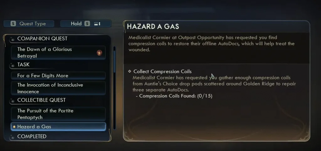 Finally, fast travel to the Matriarch’s Mercy to collect the last two compression coils in The Outer Worlds 2 and also complete the quest Hazard A Gas.