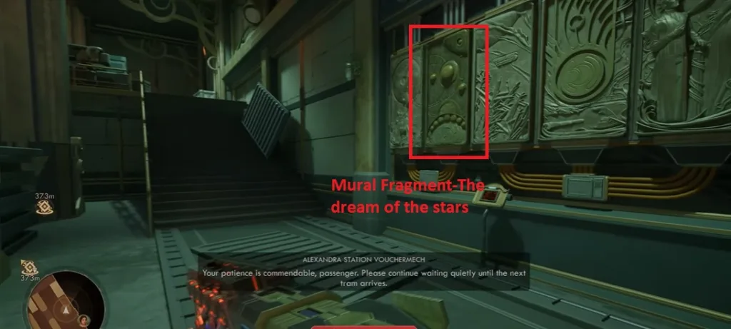 Fast travel to the Alexander Station Entrance and, using the lift, go upstairs. The Mural, Dream of the Stars, will be to your right on the wall in the corridor.