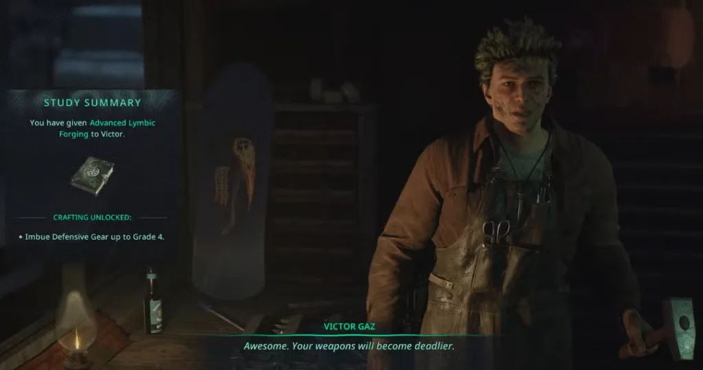 In Hell Is Us, you have to fight the enemies, “Lymbic Entities”, that are only damaged using Lymbic weapons. And to take them down you need to upgrade your weapons. This is where Victor Gaz comes in. He is the blacksmith who will upgrade your weapons once you find the crafting Tome also known as Forging books.