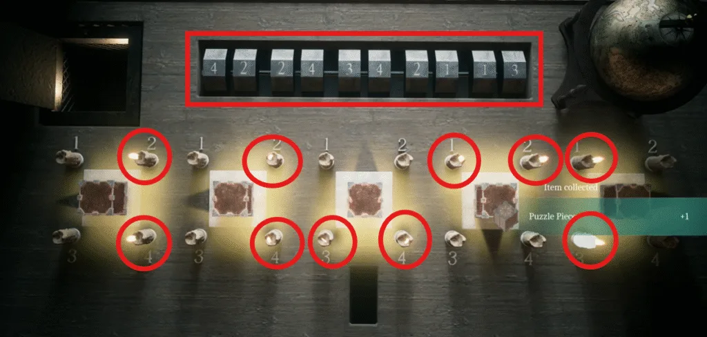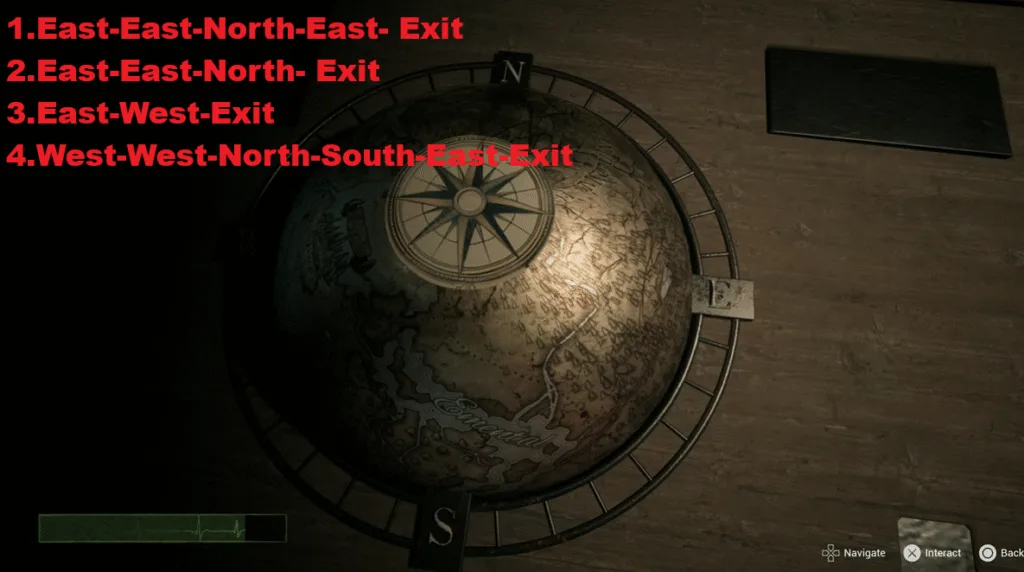 In the same room, you will also solve a globe navigation puzzle by using the puzzle piece again. Rotate the globe 4 times in the following order to get the Trapdoor key.