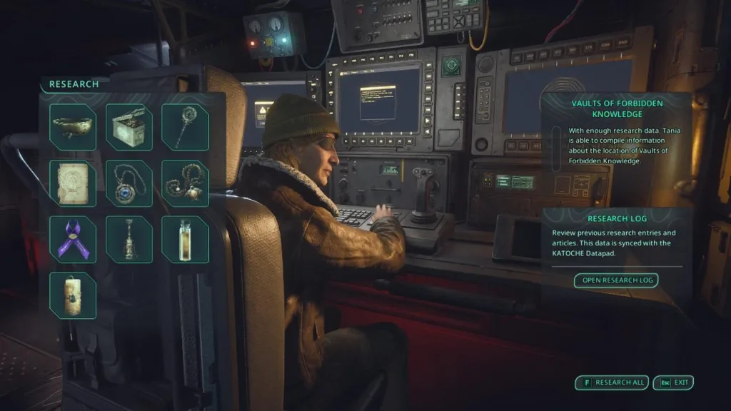 Each research item will increase the progress bar of Tania. Once complete, she will have enough information from the research item and give the vault locations along with rune codes (Solution).