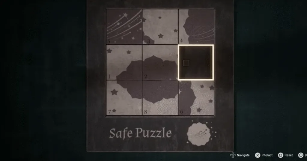 Now that you have all 3 parts for the puzzle, backtrack to the Baby Room and complete the Safe Puzzle. You will only have one space to move the pieces and complete the puzzle. Each image will have a number which you need to arrange from 1-8.