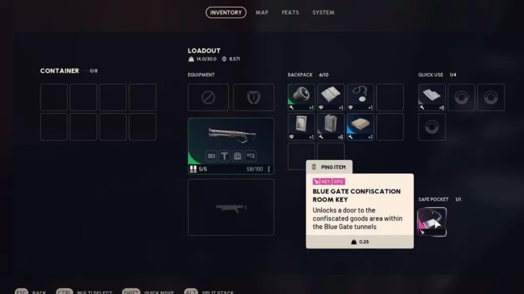 You can sell the key to vendors for 100 credits. Keep in mind that the Blue Gate Confiscation Key takes up one slot in your inventory and cannot be stored in your safe pocket. You can transfer it to your stash and back to your loadout whenever you want.