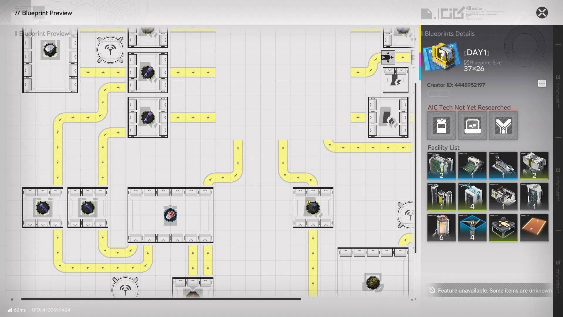 Instead of manually placing conveyors, processors, generators, and storage units, blueprint codes let you instantly deploy a fully functional factory line. However, remember that this works only if you have the required facilities unlocked already so the codes just help set everything up.