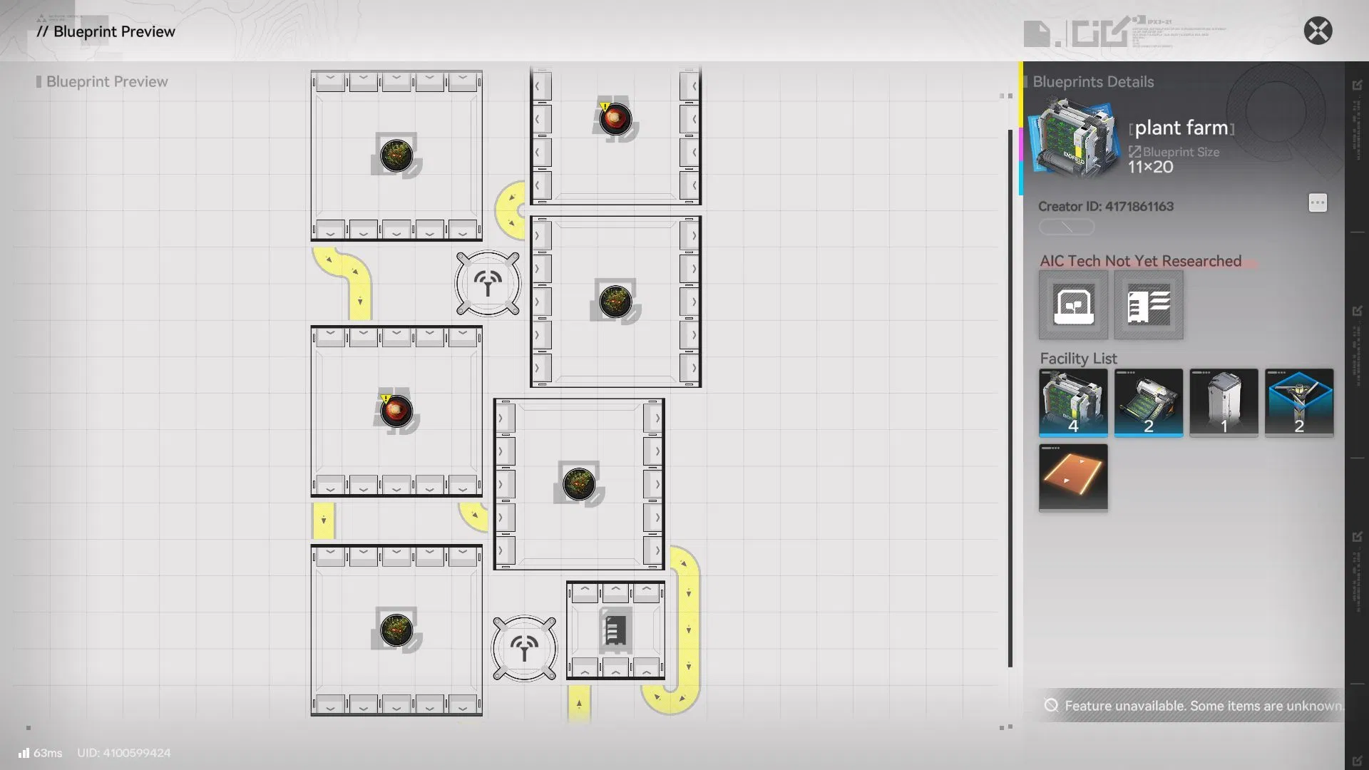 Blueprints do not bypass progression. If your account hasn’t unlocked a required structure, that part of the blueprint will appear as a hologram until you research or unlock it.
