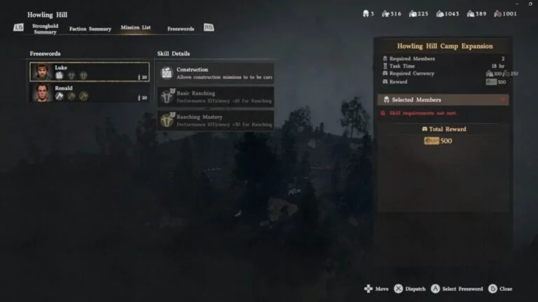 Go to the map and hover over the Howling Hills camp. After that, press Triangle, or whatever equivalent binding on your console of choice. This will open up the camp menu, from where you will have to navigate to Missions, select the recruits you want to send off, and then dispatch the mission.
