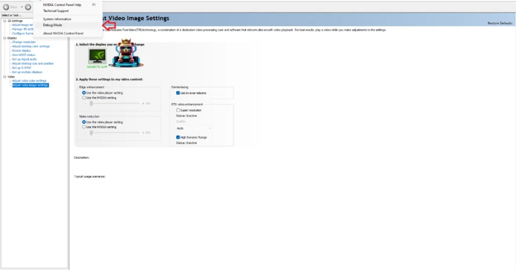 - Open Nvidia’s Control Panel and click the “Help” button from the top menu.