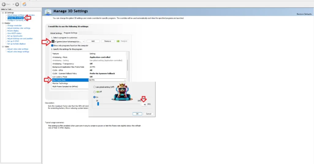 Playing on an unlocked FPS is all fun until it stresses out your GPU and CPU, resulting in games crashing on your PC. This is the same case with EA Sports FC 26, and that’s why you are experiencing in-game crashes. You will need to limit the game’s FPS. You can do this through the game’s settings, but for more precise control, I suggest using NVIDIA Control Panel. I’ll take you through both methods: