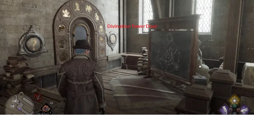 After solving the divination door puzzle, go through the hall, and you will reach the Arithmancy classroom; one is on the left, and the other is on the right.