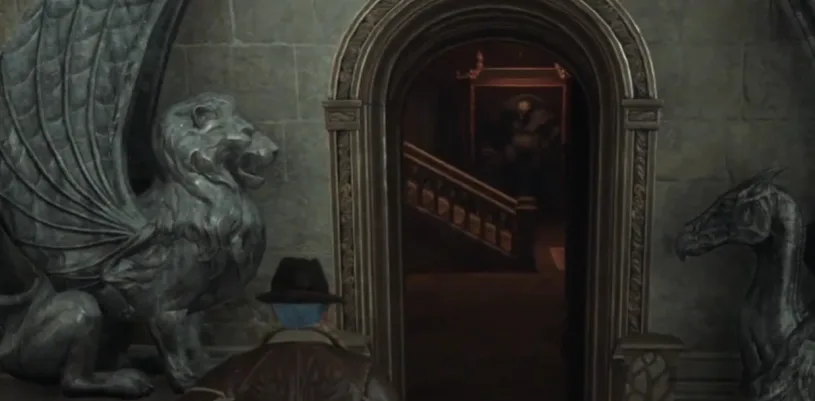 After solving the puzzle door of the grand staircase top door in Hogwarts Legacy, you will get a collection of mounted house elf heads and a Hunter green corduroy robe.