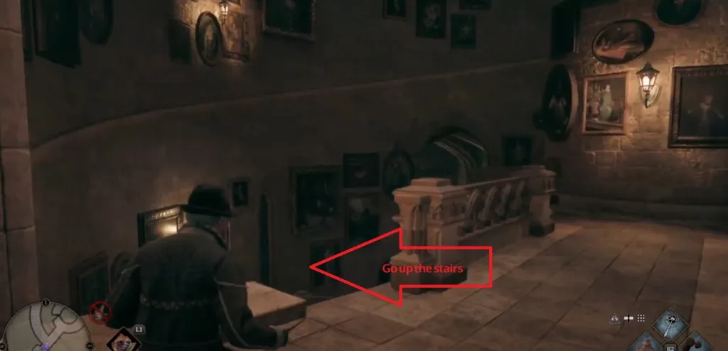 Go to the central hall, from there go upstairs in the area near to Floo Flame.