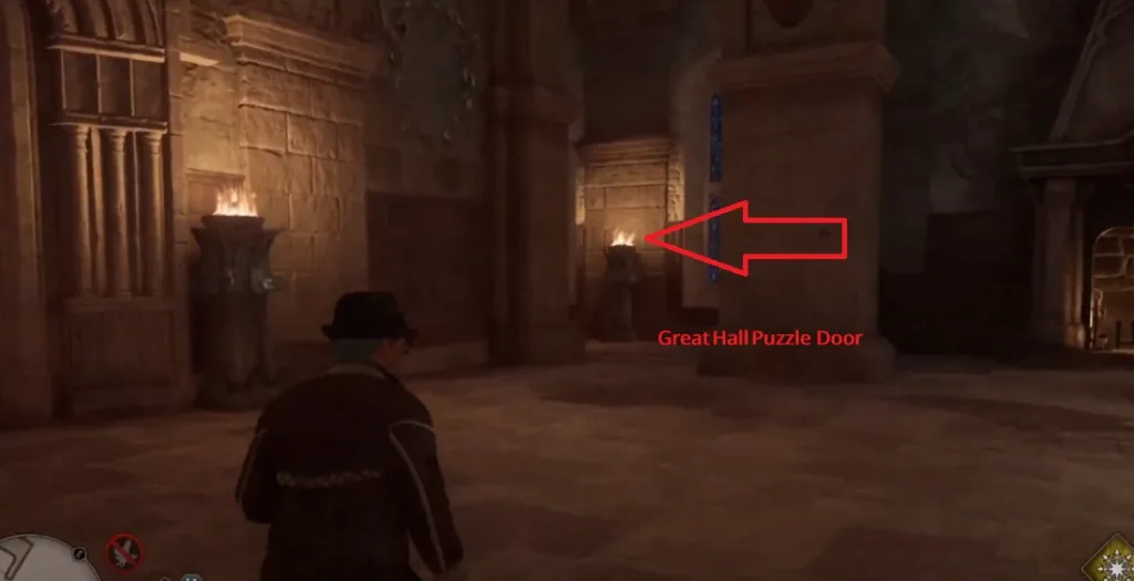 Now, go to the great hall by using the floor flame; it will take you directly to the hall, and it’s the fastest way to get there. On the left side of the hall, in the corner, you will find the Great Hall puzzle door.