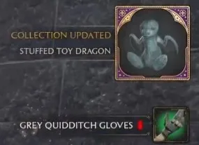 As a reward, you get a stuffed toy dragon, grey Quidditch gloves and a green fairy sorcerer hat.