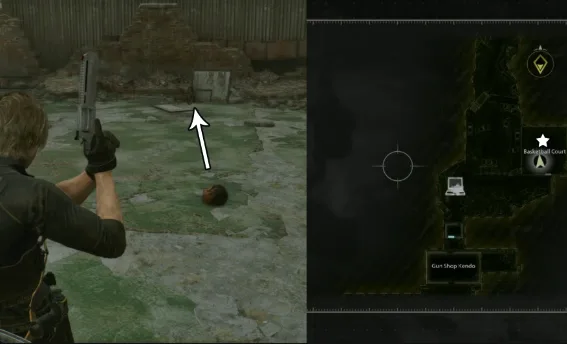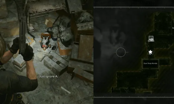 After unlocking the door in the basketball court, head to the mall room just north of Gun Shop Kendo, where you will find a headless figure. Interact with it, which will make Leon say, “Just ignore A.”