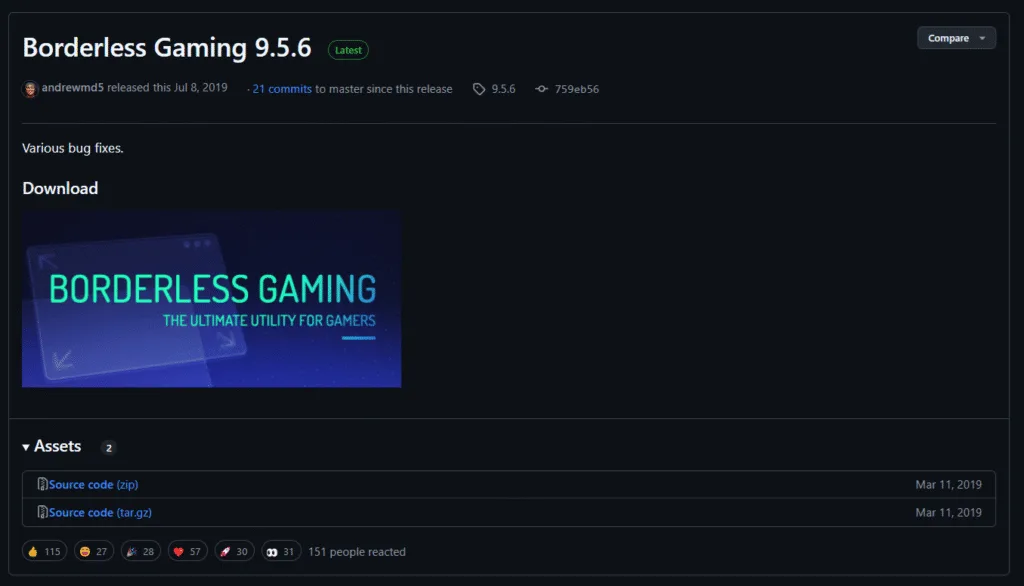 - From the Github page download the BorderlessGaming9.5.6_admin_setup.exe.