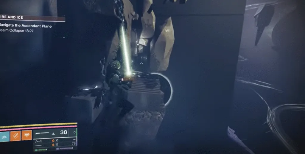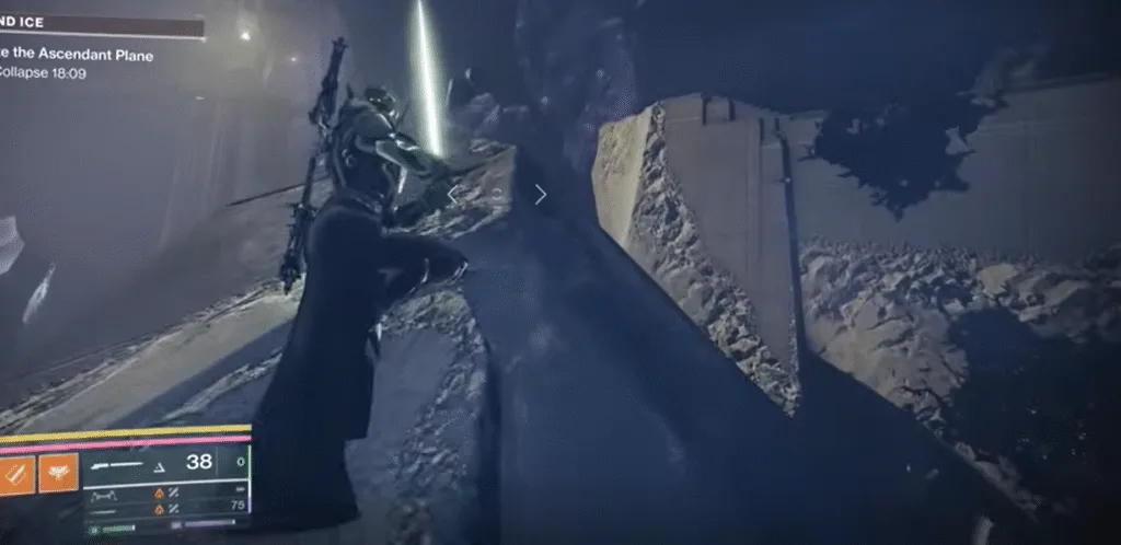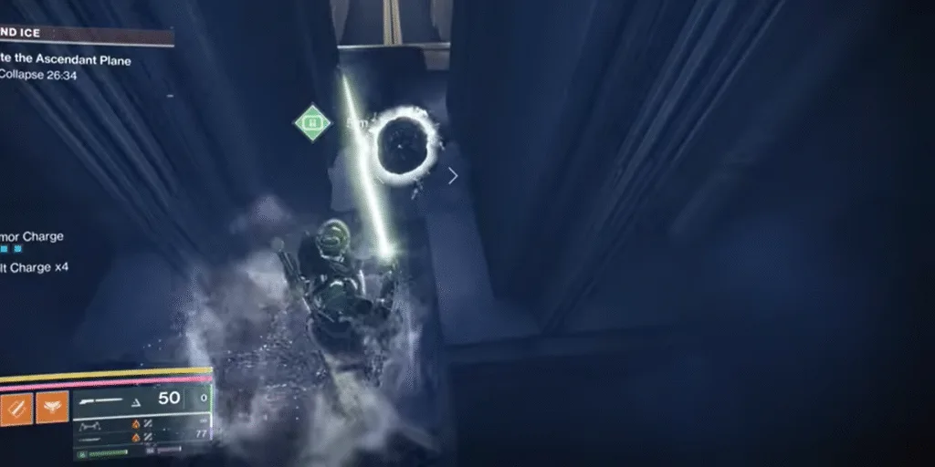 Enter the starting portal of the Fire and Ice mission, and you will see 4 crystals around the area. Shoot them down and enter the tower ahead. Now, we will not follow the quest as it will require you to jump down.