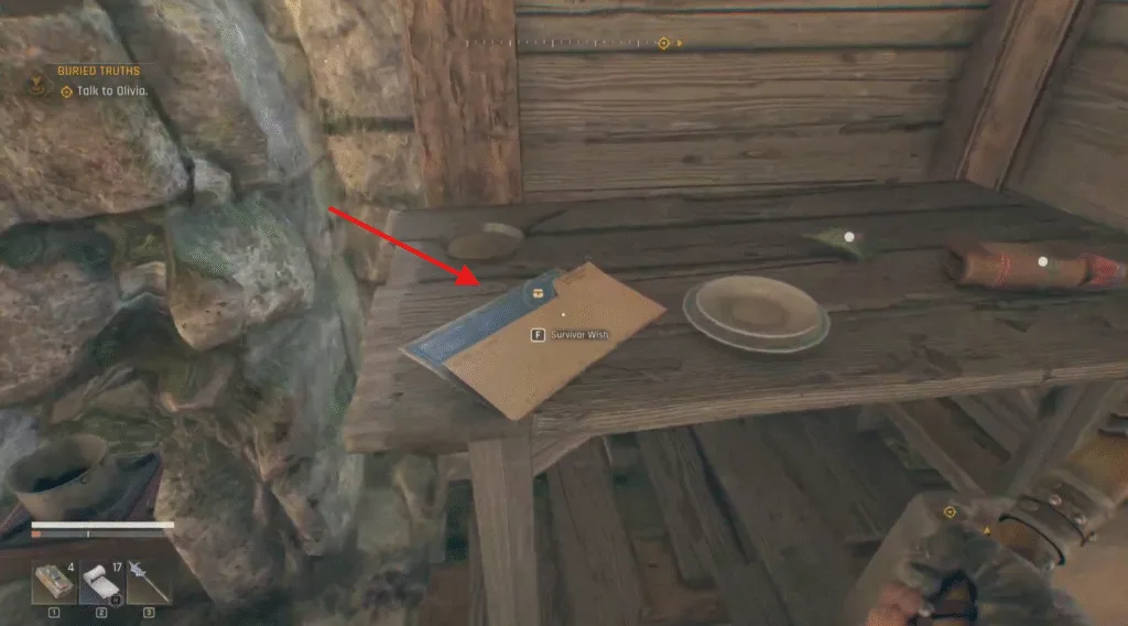 Go to marked location in the images I’ve shared above. And smash your way into the tiny broken down hut. The Survivor Wish Charm blueprint is on the wooden table inside the hut.