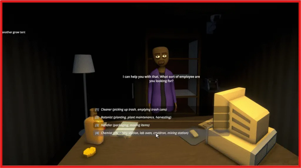 Head upstairs, and you will be able to hire these 4 types of employees. The warehouse gives you access to hiring new employees, weapons, and liquid products. These are the employees that you can hire in Schedule 1: