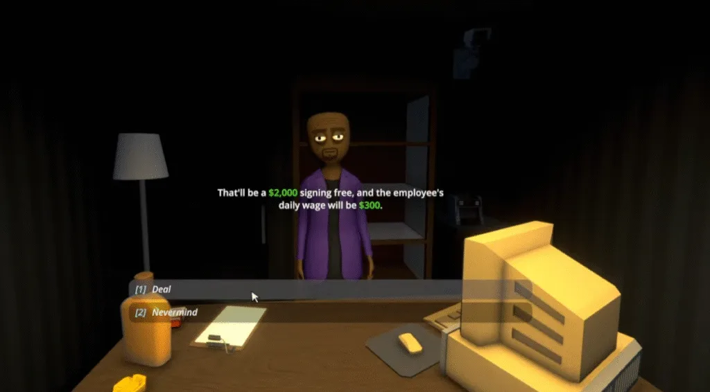 | Cleaner | Keeps the workspace clean and removes trash | $1,000 | $100 per day | Early game to avoid clutter penalties |