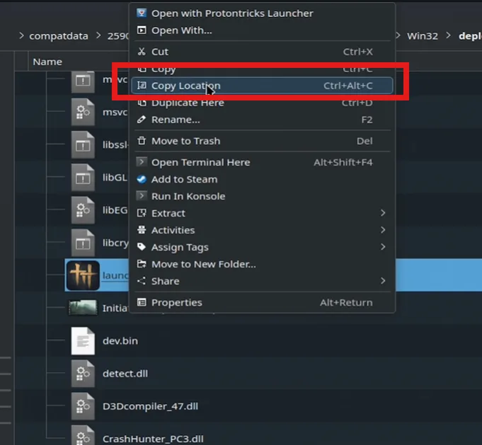 Don’t launch the file just yet, because if you do, you might have to start the process again from scratch. Right-click on the launcher.exe file and copy its location.