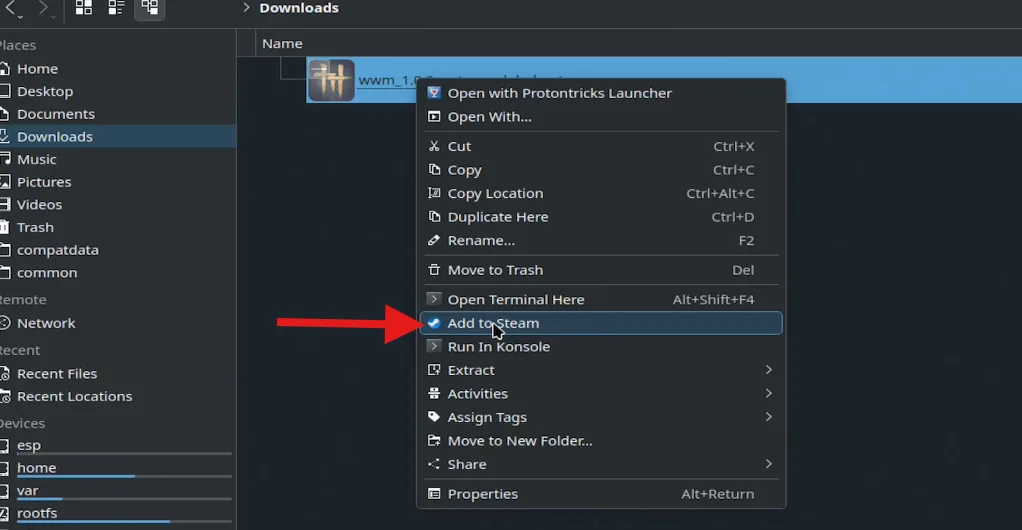 Right-click on the download file with the .exe extension and add it to Steam.