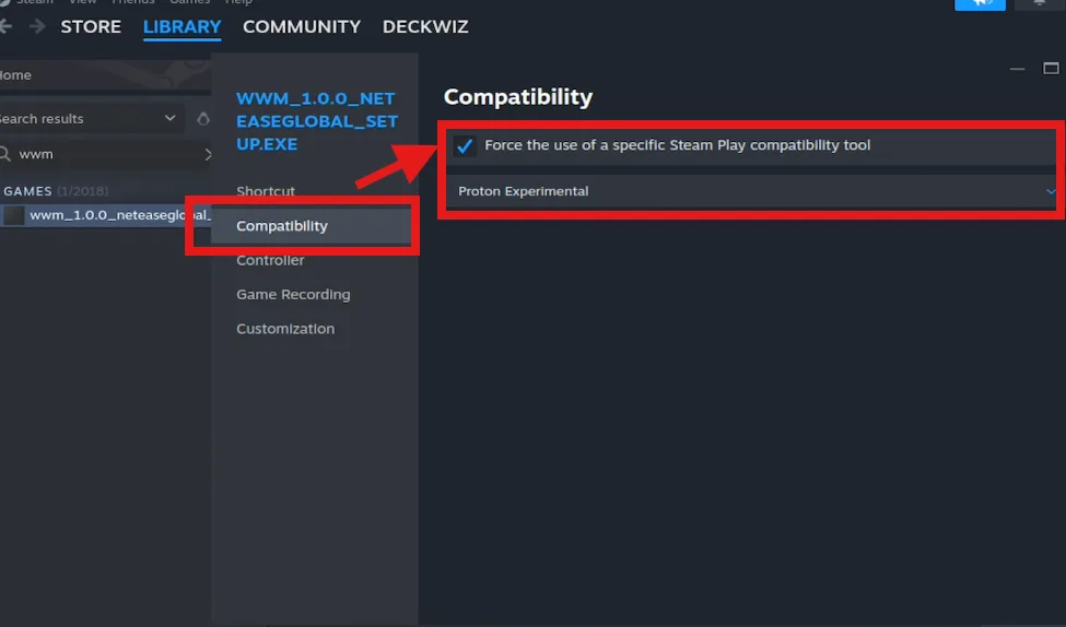 Go down to compatibility, and assign Prtoton experimental by checking the box of Force the use of a specific Steam Play compatibility.