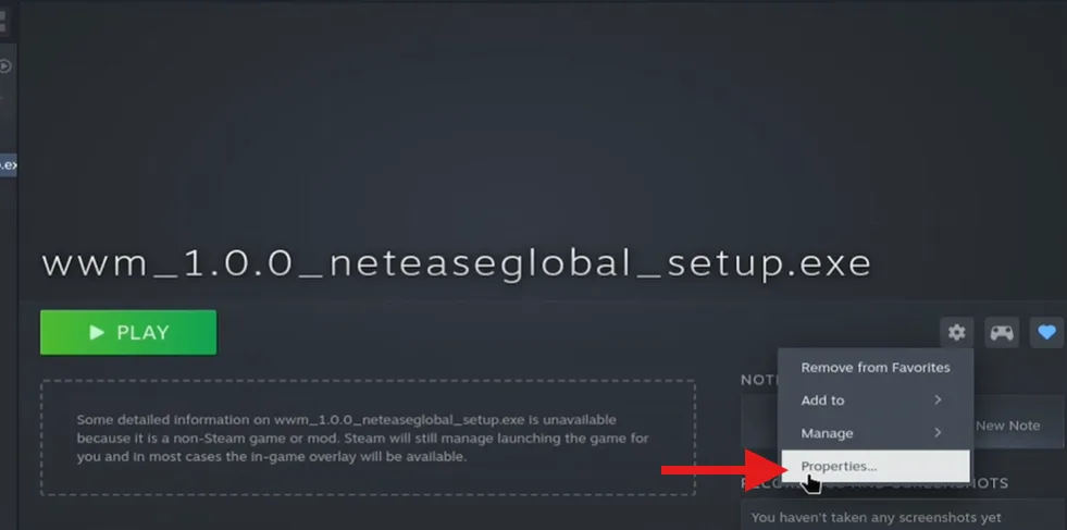 Now open Steam and find the file wwm_1.0.0_neteaseglobal_setup.exe. And select the cog symbol to open the properties of the file.