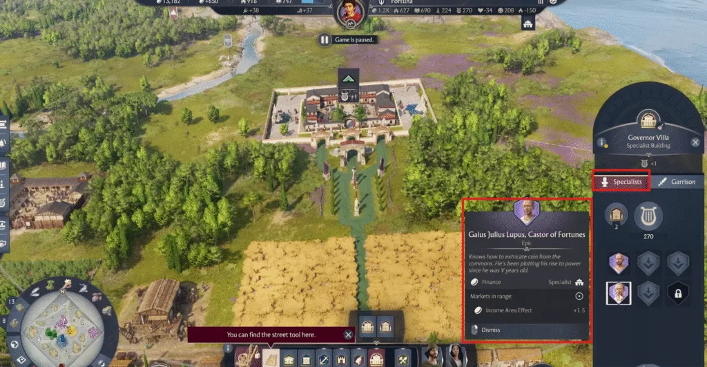 Another way of boosting your income fast in Anno 117 Pax Romana is by using specialists. These specialists are added via buildings like Villa or Aphysicium that can amplify AoE effects.