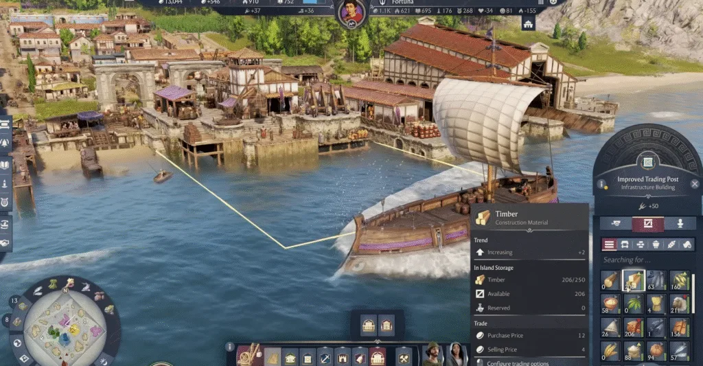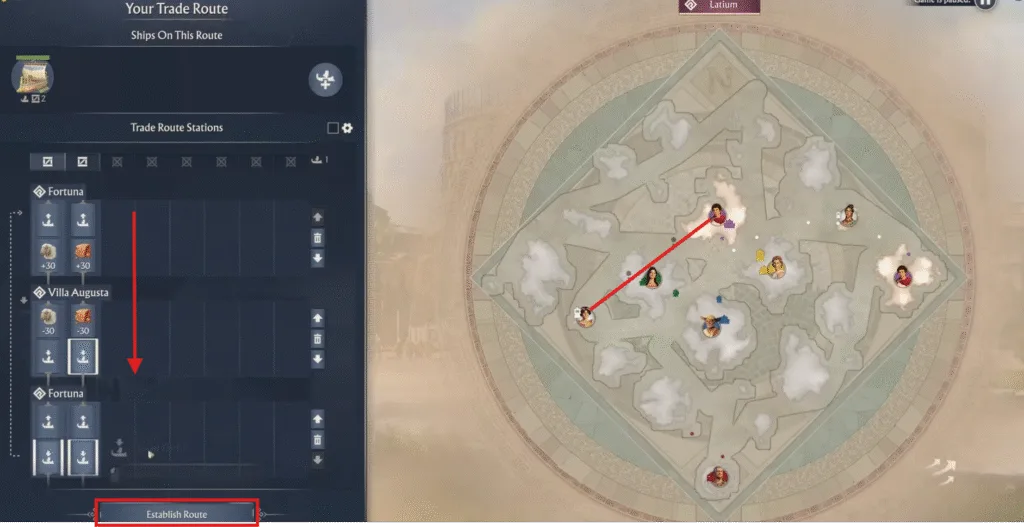 One of the biggest money sources is having a good trade with neighbors. You have surplus goods that you can sell to other islands if you have a good trading route. In the game Anno 117 Pax Romana, there are two types of trade: Passive and Active Trade routes.