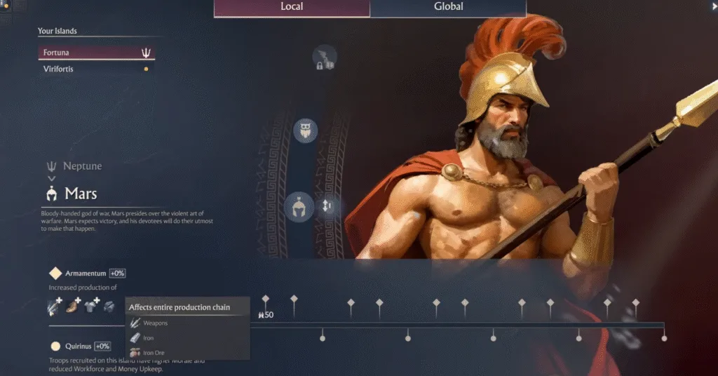 You can also use religion to make money fast in Anno 117 Pax Romana. As each Patron God offers a certain buff that boosts the production of a certain good. Like Mars boosts weapon production that can sell at a highly profitable price.