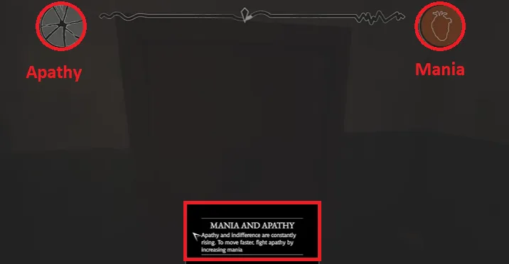 The Apathy/Mania meter is at the top of the screen. It’s a sliding bar where apathy is to the left, and the mania bar is towards the right.