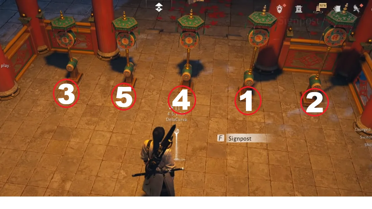 Then, play the drums in the following sequence(from left to right) to solve the Songstress Bai Rong Puzzle