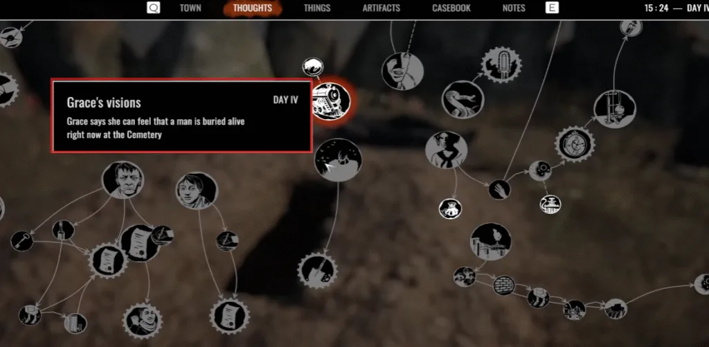 On day 4, when you are trying to solve who killed Simon from the thoughts questline, there is a point of interest at the cemetery by the name Grace’s Vision. According to her, she feels that a man is buried alive right now at the cemetery.