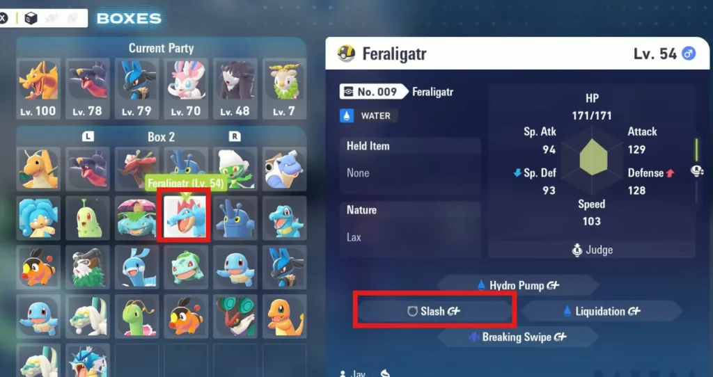 To do so, select Feraligator in your current party and use the slash ability against the substitute doll.
