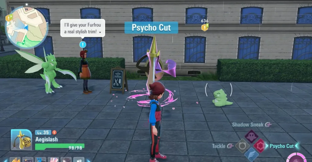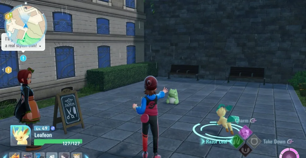 Then talk to her again to start the next side mission, “Becoming a Pro Furfrou Trimmer“. To complete the side mission, show them the technique of Razor Leaf by using Leafeon Pokémon and using the Razor ability on the substitute doll.