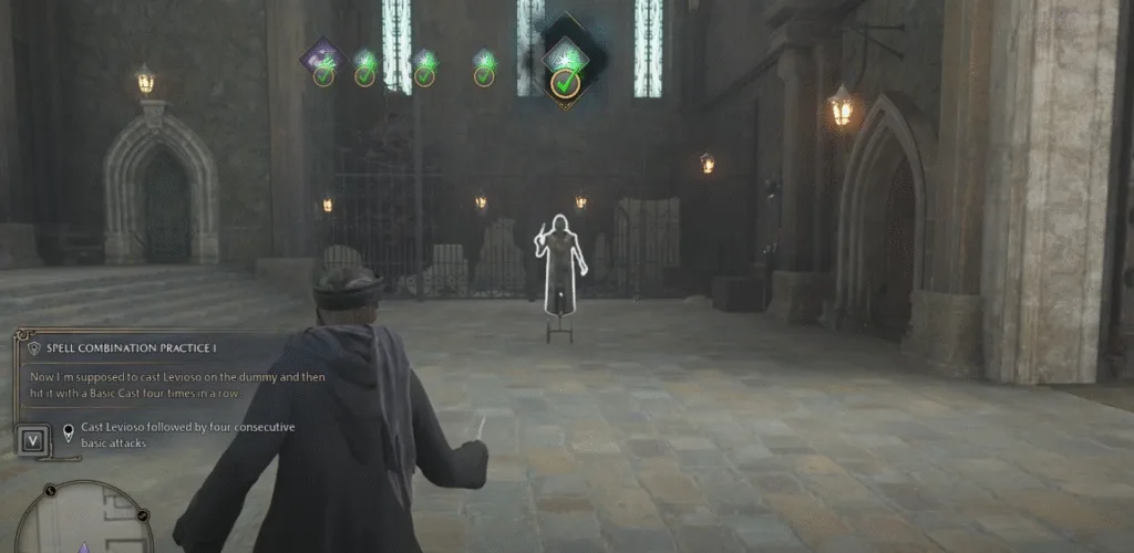 From the field guide map, track the quest location and head to the south wing where Lucan is waiting for you. Talk to him and first he will ask you to practice the spell sets on a dummy in a specific order. Upon completion of practicing combos, you can then start the duel gauntlet