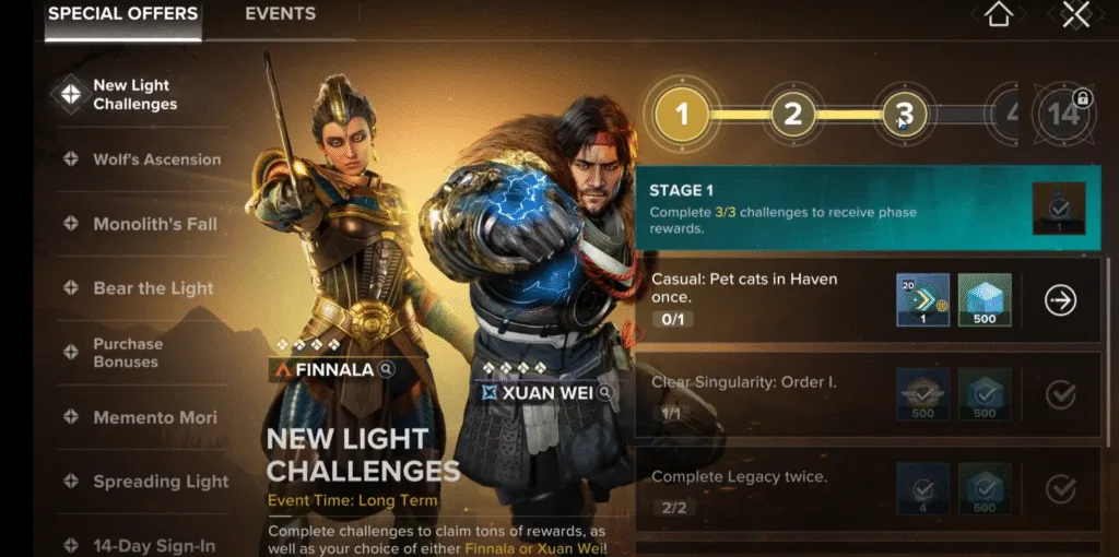 In Destiny Rising, you complete different events to progress in the game and level up your character while doing so. Each event requires you to complete different stages of challenges. New Light Challenges is one such challenges, having 14 stages.