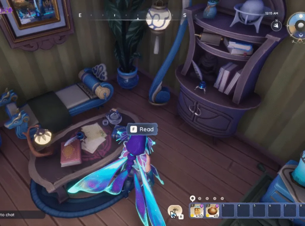 Grab the blue recipe book on the table. You unlock this area after completing the Stargazer quest (Friendship Level 3 quest). This will unlock the Veggie Chili’s recipe.