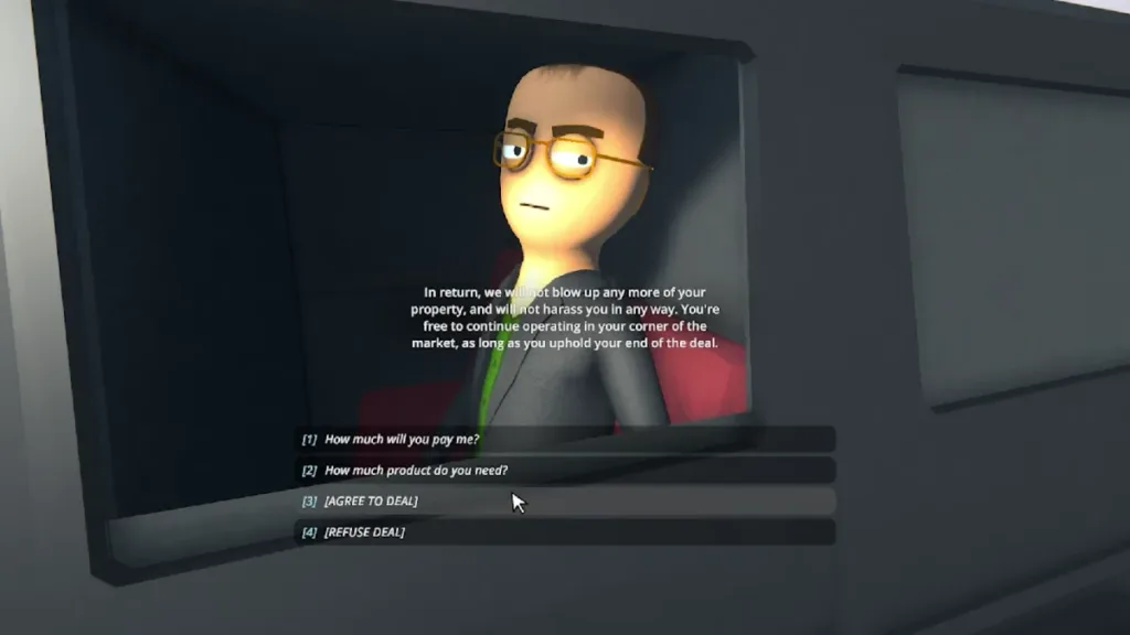 On top of that you’ll need to meet a weekly product quota. On the other hand, going up against the cartal means dealers are in danger and you’ll lose money and resource. But even though the choice might seem simple knowing the consequences, there more to this.