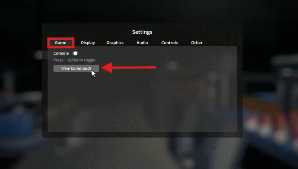 - From the settings menu, a menu box will appear. Under the game tab, you will see the console option.