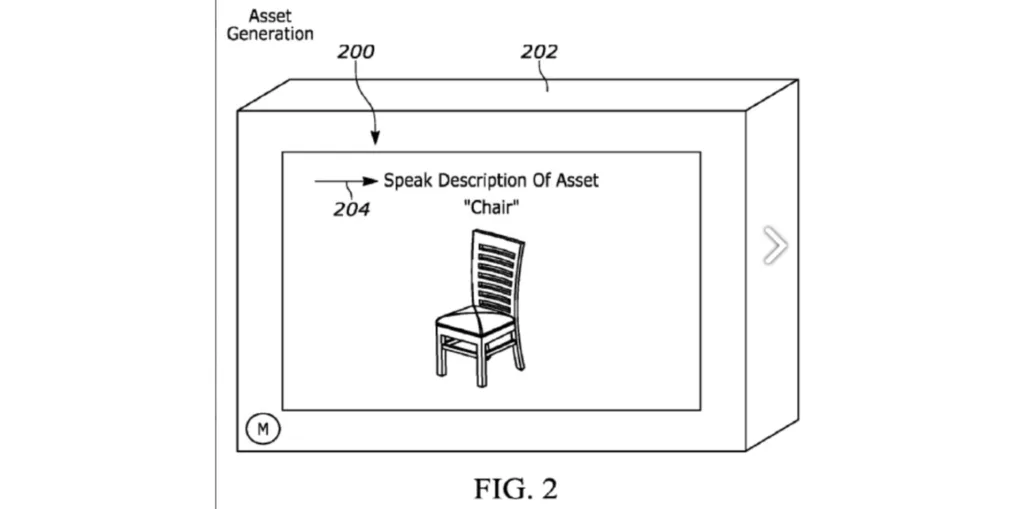The technology allows a developer to describe an object, such as a chair, through voice or a photo. This input is used to generate a 2D image of the object.