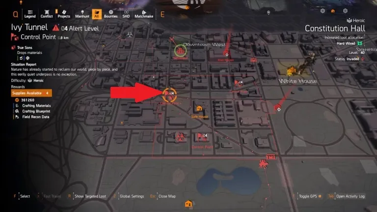The Ivy Tunnel control point itself is in the northwest part of the Constitution Hall. You can refer to its location from the image above.