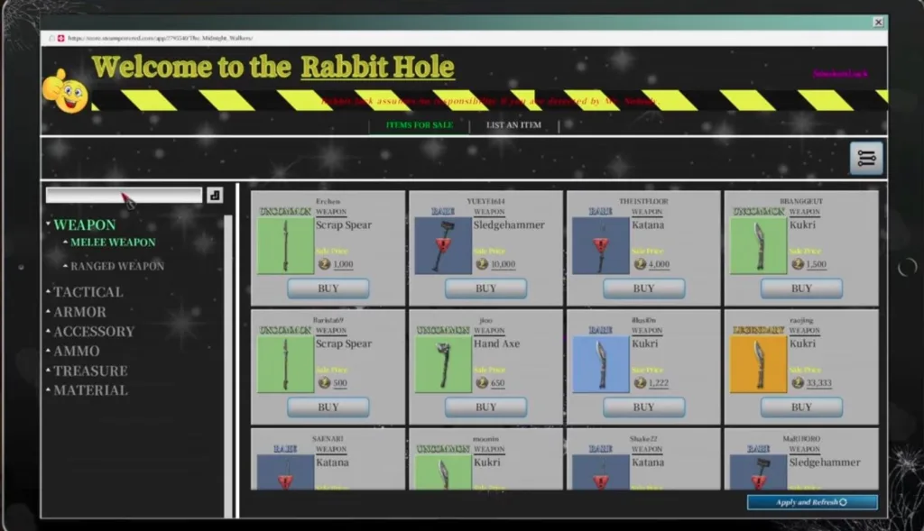 In particular, focus on weapons that can grant you a high number of coins in sales value. Doing so consistently should allow you to eventually unlock the Rabbit Hole and begin trading.